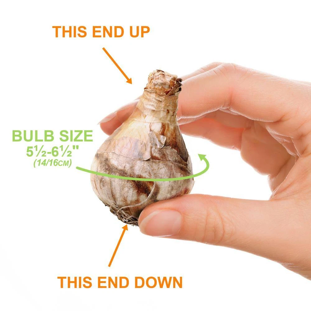 - Bulbs boast an impressive circumference of 5 in. to 5.5 in. (14 cm to 16 cm), providing a sturdy foundation for robust growth and vibrant blooms