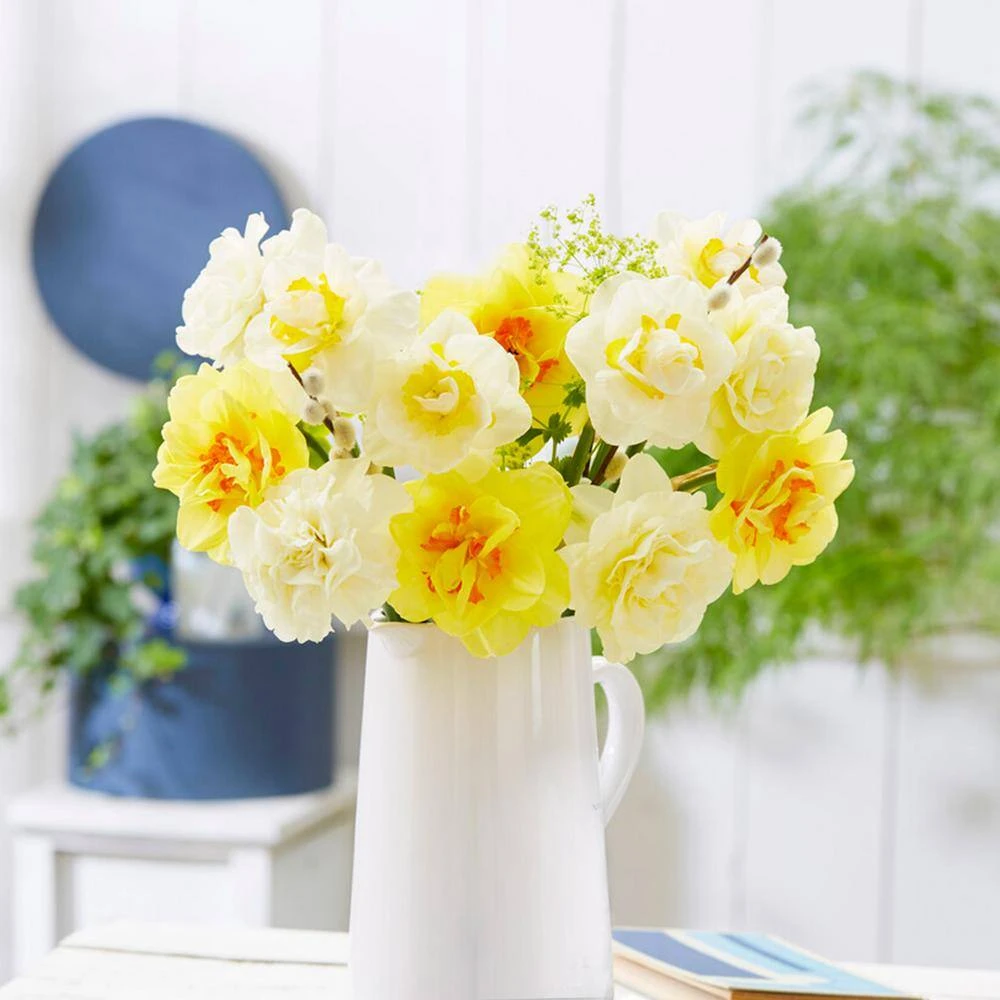 - Beautiful selection of white, yellow, and soft pink double-hybrid daffodils.