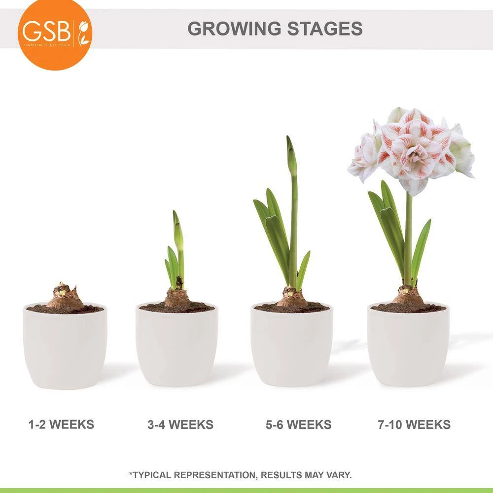Garden State Bulb Galaxy Nymph Double Amaryllis Bulbs make a delightful gift for the winter holidays. These bulbs are 10