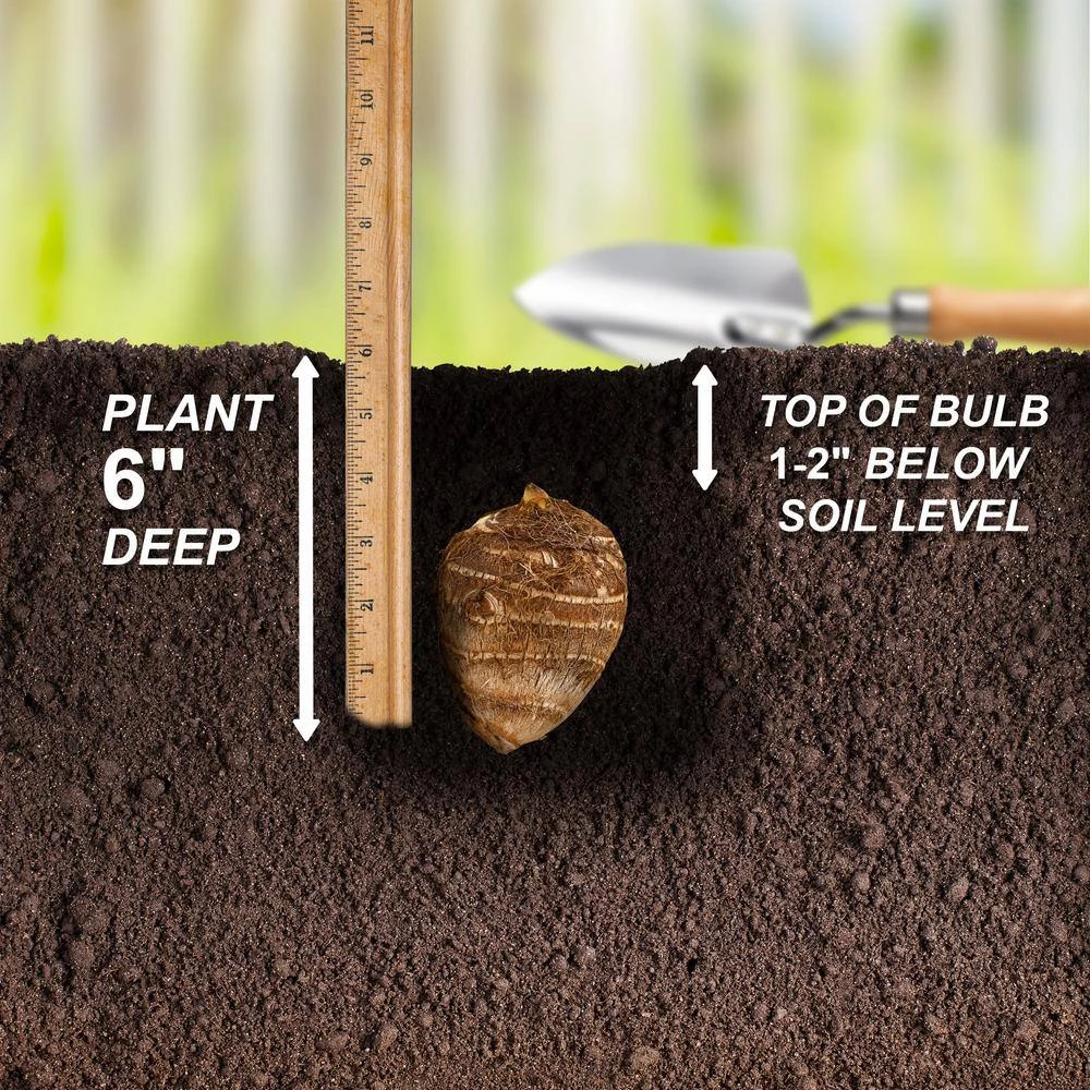 Turn your garden into a stunning tropical escape with Garden State Bulb Premium Black Magic Elephant Ear bulbs! Each bulb, measuring 5 to 7 in. in circumference, is hand-picked and carefully checked for top quality before it reaches you. Known for its bold, purplish-black heart-shaped leaves and tall, dramatic stalks, the Black Magic Taro brings a touch of the exotic to any garden or patio. Easy to grow and perfect for both containers and garden beds, it thrives in moist areas with partial sun to partial shade, and you can even bring it indoors during winter in cooler zones. Plus, it loves water and nutrients and is naturally deer and rabbit resistant, making it a low-maintenance, high-impact addition to your landscape.