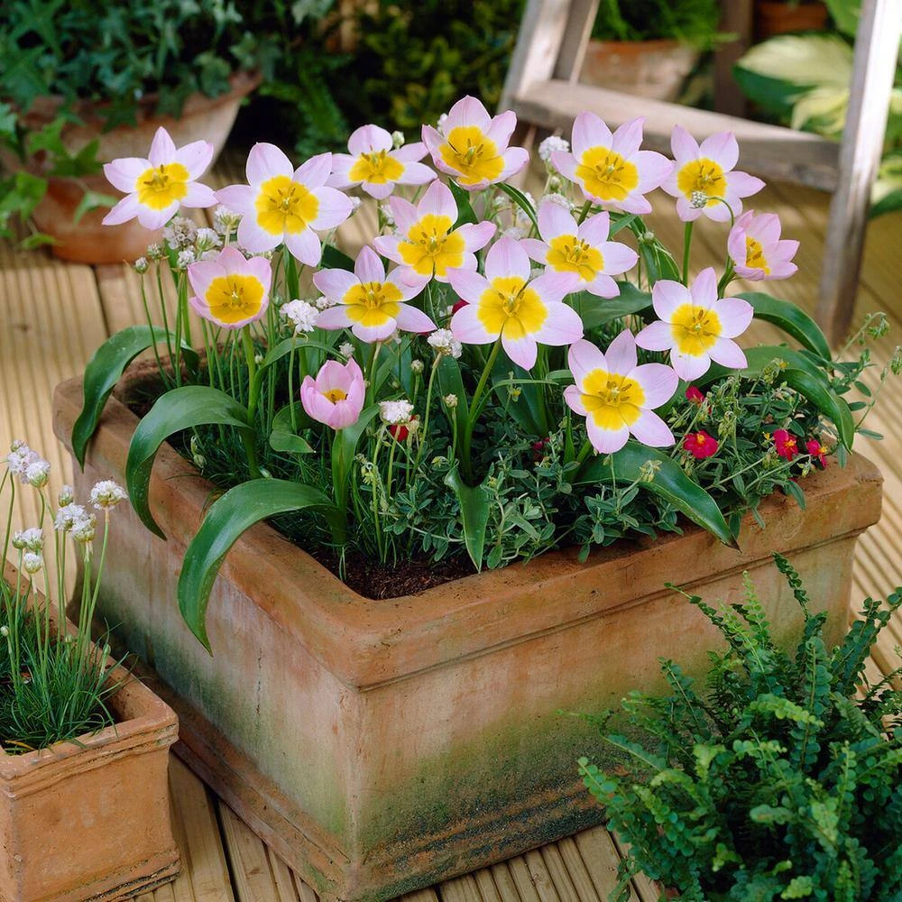 Introducing the Garden State Bulb Lilac Wonder Bakeri Tulip Flower Bulbs – a delightful choice for any garden enthusiast. These tulip bulbs, sourced from trusted farms and growers in Holland, measuring 6/plus cm in circumference, promise to bring a burst of vibrant color and elegance to your garden. The ‘Lilac Wonder’ variety is known for its charming, star-shaped blooms in soft shades of lilac-pink with a bright yellow center, creating a striking and eye-catching contrast. Blooming in mid-Spring and growing up to 6 in. Tall, they are perfect for borders, rock gardens and containers. Their compact size and graceful appearance are enhanced by slender, grass-like foliage, adding texture and interest to your garden landscape. The ‘Lilac Wonder’ tulips are easy to grow and maintain, making them ideal for both novice and experienced gardeners. Thriving in various climates and particularly well-suited to dry areas, they are resilient and adaptable. Their vibrant flowers attract pollinators like butterflies and bees, enhancing the ecological health of your garden. Plant these bulbs in the fall for a delightful Spring display that will enchant everyone who sees it. Perfect for cut flowers, the ‘Lilac Wonder’ tulips bring the fresh, cheerful beauty of Spring indoors, transforming your garden into a lively, colorful paradise.